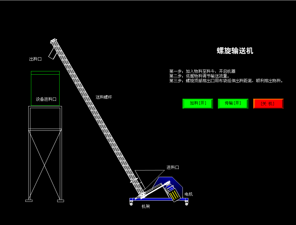 該機(jī)是利用電機(jī)帶動螺旋回轉(zhuǎn),推動物料以實現(xiàn)輸送的機(jī)械。