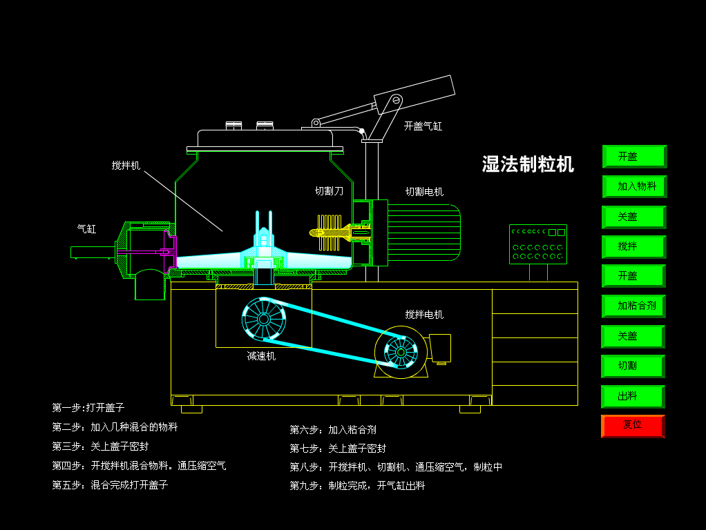 整個過程由混合、制粒兩個工序組成。